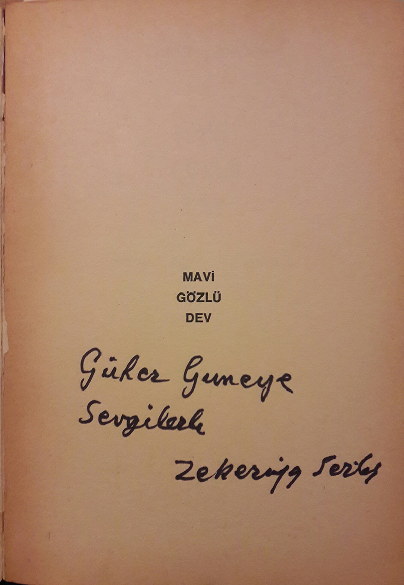 Nâzım’ı ilk kez görüyordum. Uzun boylu, san kıvırcık saçlı, mavi gözlü, san kaşlı, çok sevimli ve güzel bir gençti. İlk bakışta insanı kavrayan bir hâli vardı. Mütevazı, utangaç ve çekingen bir genç izlenimini veriyordu. Selâmlaştıktan sonra iki elini göbeğinin üstünde bağlayarak karşımdaki koltuğa oturdu. Görücüye çıkmış gelin gibi sıkılıyordu. Vâlâ, Nâzım’ın nasıl büyük bir şair olduğunu anlattıkça Nâzım utancından başını yere eğiyor, yüzüme bakmaya cesaret edemiyordu. Yalnız arada bir gözaltından beni süzmekten kendini alamıyordu. O gün Nâzım’ın Resimli Ay’da çalışmaya başlamasını kararlaştırdık.